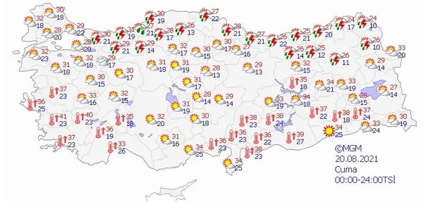 20 AĞUSTOS 2021 CUMA HAVA DURUMU