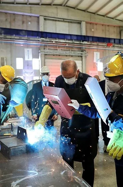 Başkan Erdoğan ile birlikte kaynak yapan Tuğ, 26 yeni fabrikanın açılışında kurdele kesimi sırasında da Cumhurbaşkanı'nın yanında durdu.