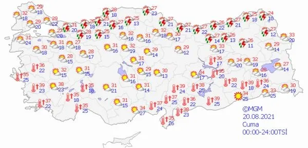 Meteoroloji Genel Müdürlüğü son dakika uyarısı yaparak Marmara ve Batı Karadeniz bölgesi için sel ve su baskınlarına karşı dikkatli olunması gerektiğini söyledi. Yapılan açıklamada "Sinop'un batısında yerel kuvvetli yağışlara dikkat!" denildi. İşte 20 Ağustos hava durumu...