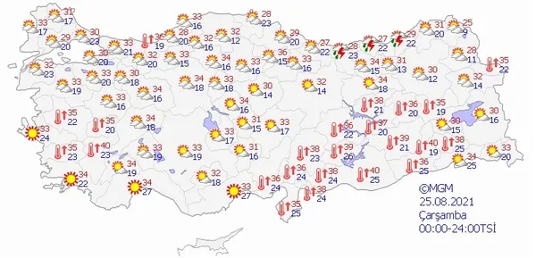 25 AĞUSTOS 2021 ÇARŞAMBA HAVA DURUMU