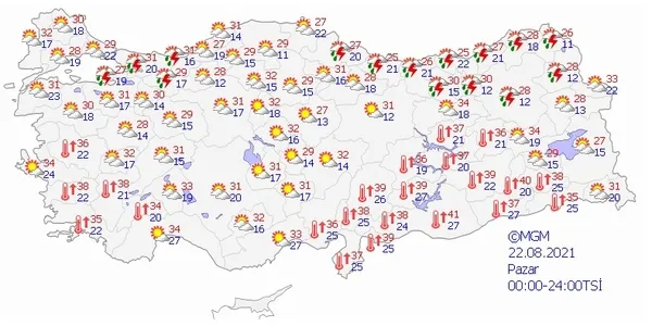 22 AĞUSTOS 2021 PAZAR HAVA DURUMU