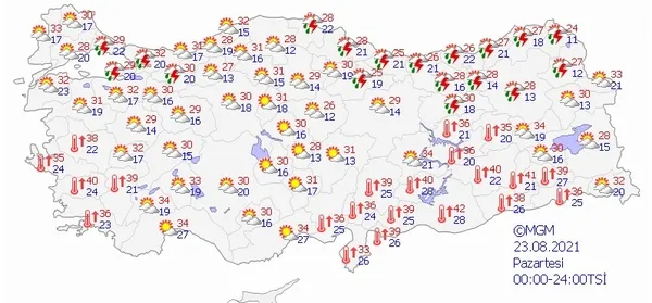 23 AĞUSTOS 2021 PAZARTESİ HAVA DURUMU