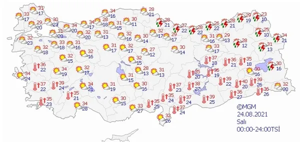 24 AĞUSTOS 2021 SALI HAVA DURUMU