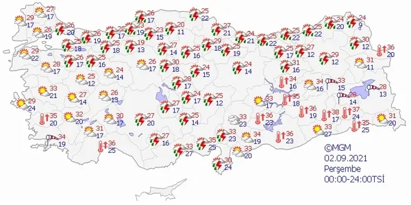 2 EYLÜL 2021 PERŞEMBE HAVA DURUMU