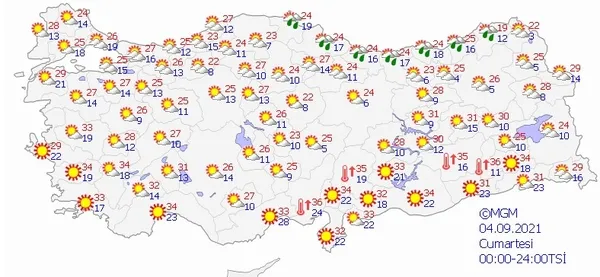 4 EYLÜL 2021 CUAMRTESİ HAVA DURUMU