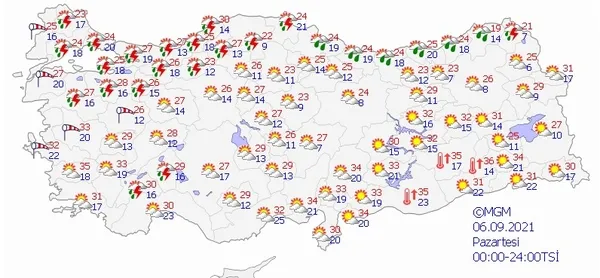 6 EYLÜL 2021 PAZARTESİ HAVA DURUMU