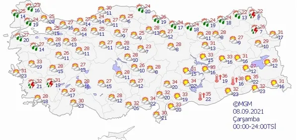 8 EYLÜL 2021 ÇARŞAMBA HAVA DURUMU