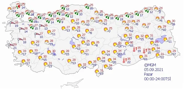5 EYLÜL 2021 PAZAR HAVA DURUMU