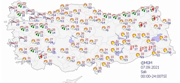 7 EYLÜL 2021 SALI HAVA DURUMU