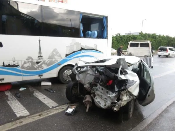 Sonra sağa sola çarptıktan sonra otomobile çarptı. Direksiyon hakimiyetini kaybetti sürücü." diye konuştu. Ahmet Yıldız isimli yolcu ise "Yağmurdan dolayı araca çarptık " diye konuştu.