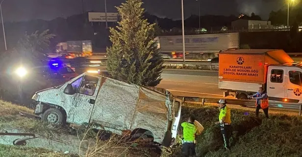Son dakika: TEM Otoyolu'nda kontrolden çıkan hafif ticari araç kanala uçtu: 2 ağır yaralı