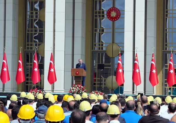 Buradaki konuşmasına, kendisini dinleyenleri selamlayarak başlayan Erdoğan, farklı sektörlerde alınlarının teriyle ekmeklerini kazanan işçilerle, bu gazi mekanda, milletin evinde bir araya gelmekten büyük bir memnuniyet duyduğunu ifade etti.