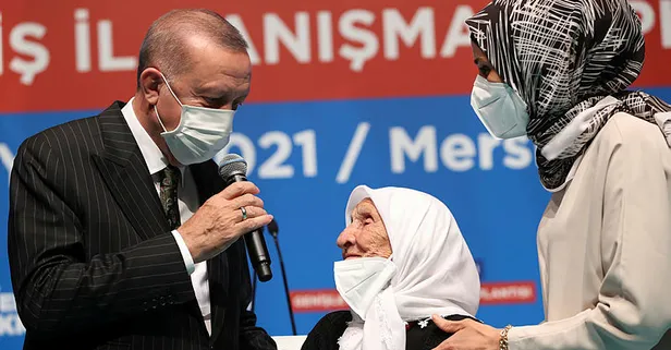 Mersin'e önceki ziyaretinde görüştüğü 107 yaşındaki Fikriye Çam'la da bir araya gelen ve sohbet eden Erdoğan, "Fikriye Teyze ile belli bir aralıktan sonra, yeniden bizleri bir araya getiren Rabbime sonsuz hamdüsenalar olsun. Elhamdülillah, 107 yaşında Fikriye Teyze, Rabbim daha nice ömür nasip etsin. Bizi inşallah cennetiyle, cemaliyle müşerref kılsın." ifadelerini kullandı.