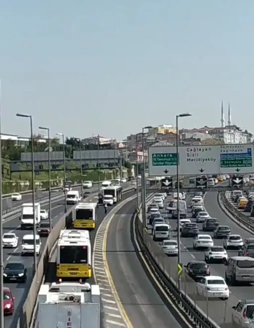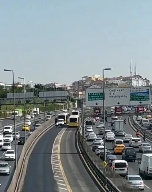 Görüntüler Halıcıoğlu Metrobüs Durağı'nda kayda alındı. Günlük milyonlarca kişiyi taşıyan metrobüslerden biri, arıza yaptı ve çift yönlü olan yolda kenara çekildi.