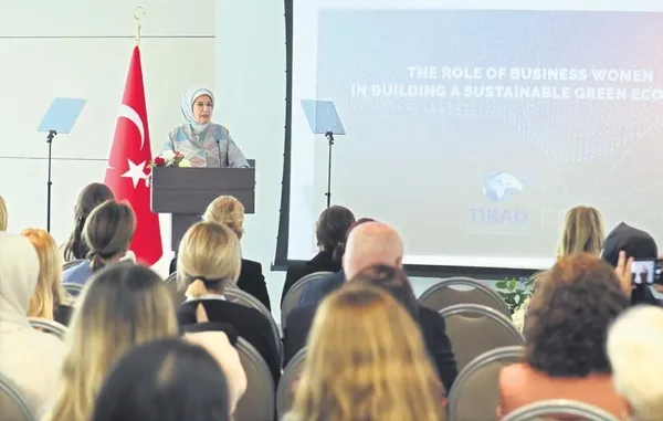 Başkan Erdoğan'ın eşi Emine Erdoğan, dün ABD'de Türkiye İş Kadınları Derneğinin düzenlediği konferansa katıldı. Türkevi'nde gerçekleşen etkinlikte konuşan Emine Erdoğan, "Kadınlarımızın, ara buluculuk ve iletişim güçlerini kullanarak, çevre diplomasisinde bayrağı en önde taşıyacağına yürekten inanıyorum" açıklaması yaptı.