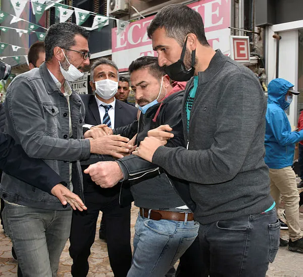 Bazı partililer uzaklaştırılmak istenen vatandaşın üzerine yürüdü. Vatandaş ve partililer arasında arbede yaşandı.