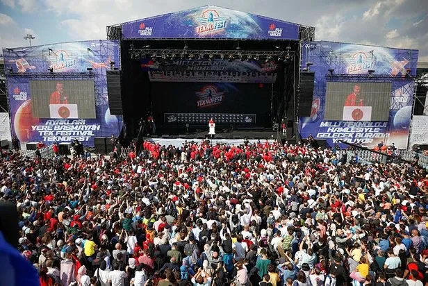 Başkan Recep Tayyip Erdoğan, Türkiye'nin en büyük teknoloji etkinliği TEKNOFEST'e katıldı. Başkan Erdoğan Atatürk Havalimanı'ndaki etkinliğe helikopterle geldi ve tribünden öğrencilerle "Milli Kanatlar" isimli gösteriyi izledi.