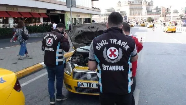 Trafik Denetleme Şube Müdürlüğü Sivil Trafik ekipleri Taksim Meydanı'nda taksilerin kısa mesafe yolcu almama, turist seçme ve taksimetre açmama gibi olumsuzluklara yönelik denetim yaptı.