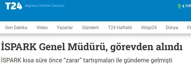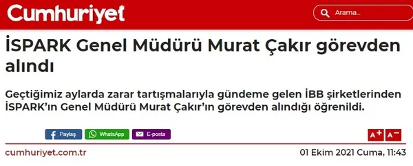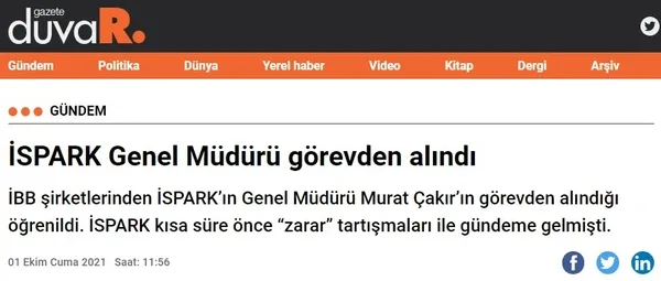 Son dakika haberi... İSPARK'ın borç batağında ve batmak üzere olduğu gerçeği gündemin en çok konuşulan maddelerinden bir tanesi haline gelmişti. AK Parti Grup Başkanvekili M. Tevfik Göksu, CHP İstanbul Büyükşehir Belediyesi'ne (İBB) bağlı İSPARK'ın zararının 100 milyon lira olduğunu açıklamıştı. Son dakika haberine göre İSPARK’ın Genel Müdürü Murat Çakır görevden alındı. Zarar yok diyen İBB ve fondaşı medya faturayı ona kesti.