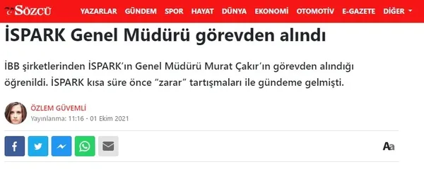 İBB'nin fonladığı medyalar ise faturayı İSPARK Genel Müdürü Murat Çakır'a keserek görevden alındığını duyurdu. Sözcü, Cumhuriyet, T24 Gazete Duvar gibi İBB fondaşı kuruluşlar zararın nedenini sorgulamak yerine Murat Çakır'ın görevden alınmasını haberleştirdi.