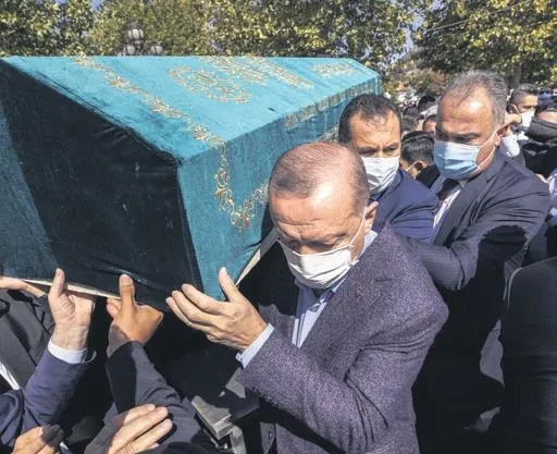 Başkan Erdoğan, Asiltürk'ün tabutuna omuz vererek cenaze aracına taşınmasına eşlik etti.