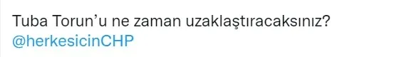 Tuba Torun sosyal medya hesabı üzerinden özür dilemesine rağmen Fenerbahçeli taraftarların öfkesi dinmedi. Tuba Torun için "Partiden atın yoksa CHP'ye oy moy yok" diye tepkiye devam eden taraftarlar, CHP'den konuyla ilgili adım beklediklerini belirtti.
