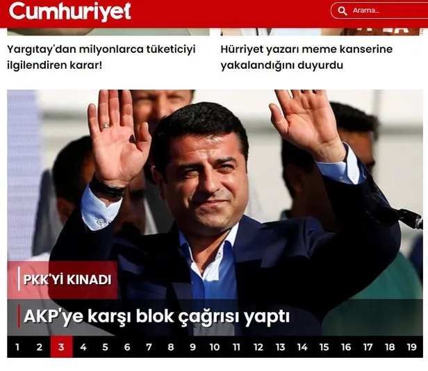 Sözde Atatürkçü Cumhuriyet ise kendine yakışanı yaptı, CHP ve ortaklarının çıkarlarını gözetecek şekilde Atatürkçülüğü bir kenara bırakarak Kandil'in sesi oldu. Cumhuriyet, Demirtaş'ın sözlerini manşetine taşıyarak "PKK'yı kınadı" başlığıyla teröristleri aklama peşine düşen bir başka yaın organı oldu.