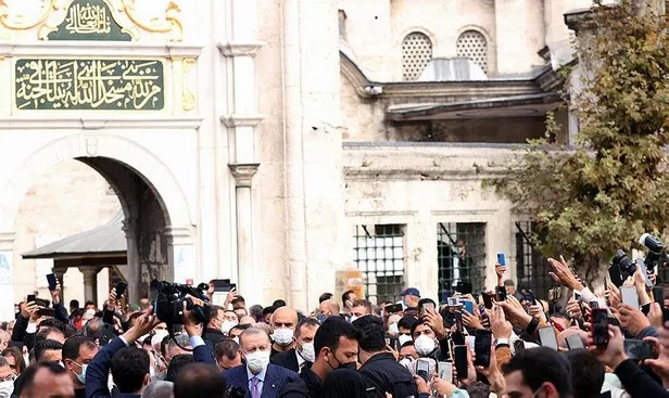 Cuma namazını kılan Başkan Erdoğan, ardından camiden ayrıldı. Vatandaşlar cami çıkışında Başkan Erdoğan'a yoğun ilgi gösterdi.