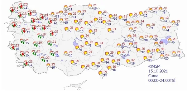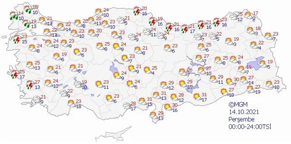 14 EKİM 2021 PERŞEMBE HAVA DURUMU