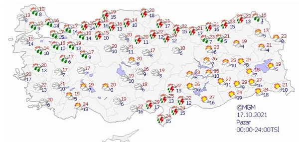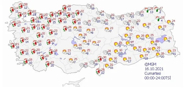 16 EKİM 2021 CUMARTESİ HAVA DURUMU