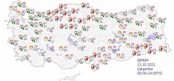 13 EKİM 2021 ÇARŞAMBA HAVA DURUMU