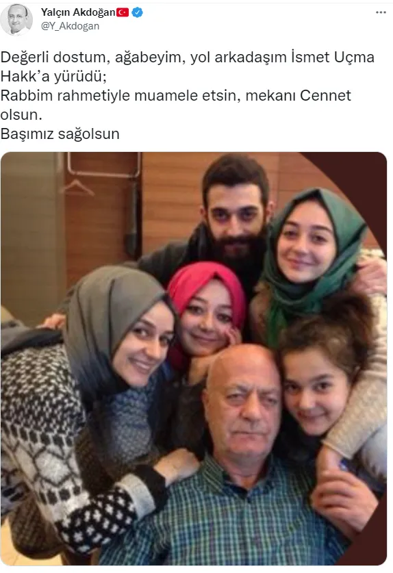 AK Parti Genel Merkez Demokrasi ve Hakem Kurulu Başkanı ve Ankara Milletvekili Yalçın Akdoğan, üzücü haberi Twitter adresinden duyurarak, "Değerli dostum, ağabeyim, yol arkadaşım İsmet Uçma Hakk'a yürüdü; Rabbim rahmetiyle muamele etsin, mekanı Cennet olsun. Başımız sağolsun" dedi.
