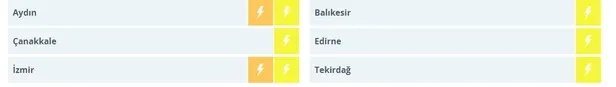 Aydın ve İzmir için turuncu, Çanakkale, Balıkesir, Edirne ve Tekirdağ için sarı kodlu uyarı verildi.