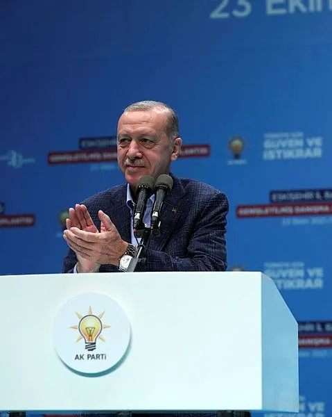 AK Parti Eskişehir Genişletilmiş İl Danışma Toplantısı'nda konuşan Başkan Erdoğan, "Dünyanın en büyük 10 ekonomisinden biri olma hedefimize eninde sonunda muhakkak ulaşacağız. Bu uğurda çalışmaya devam ediyoruz. Türk ekonomisini yatırım, üretim, istihdam sütunları üzerinde yükseltmek için gayret gösteriyoruz." dedi. Erdoğan, "Katliamcı geçmişleriyle yüzleşmek yerine Türkiye'ye laf atanları muhatap almıyoruz. Siz değil misiniz Cezayir'de 1 milyon insanı katlettiniz. Nijerya'da 1 milyon insanı katlettiniz. Kim bunlar? Fransa. Bunlar bize insanlık dersi veremez. Bunlar önce insanlığı öğrenmeleri lazım. Nereden, Türkiye'den öğrenmeleri lazım." şeklinde konuştu. CHP'nin memurları tehdit terörüne değinen Başkan Erdoğan, "Sakın bu oyunlara gelmeyin, memur olarak görevinizi yaptığınız sürece bunların hiçbiri kılınıza dokunamaz." şeklinde konuştu.