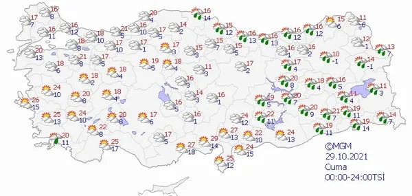 29 EKİM 2021 CUMA HAVA DURUMU
