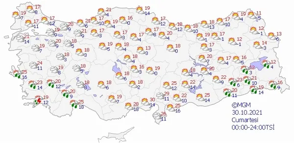 30 EKİM 2021 CUMARTESİ HAVA DURUMU