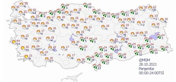 28 EKİM 2021 PERŞEMBE HAVA DURUMU