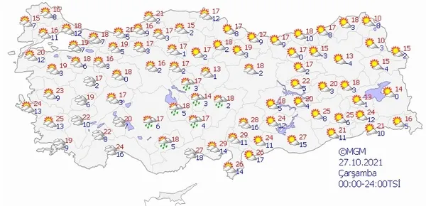 27 EKİM 2021 ÇARŞAMBA HAVA DURUMU