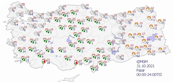 31 EKİM 2021 PAZAR HAVA DURUMU