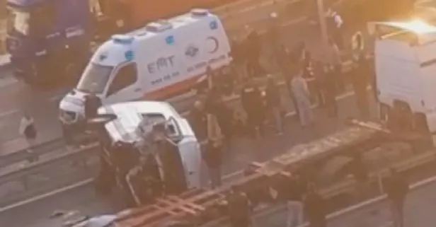 Son dakika: Beylikdüzü'nde TIR'a arkadan çarpan servis minibüsü devrildi: Çok sayıda yaralı var