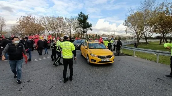 İstanbul Büyükşehir Belediyesi'nin (İBB) 10'uncu sefer gündeme getirdiği 5 bin yeni taksi teklifine karşı olan taksiciler 'Esnaf burada İmamoğlu nerede?' sloganları atarak İBB yönetimine kırmızı kart gösterdi.