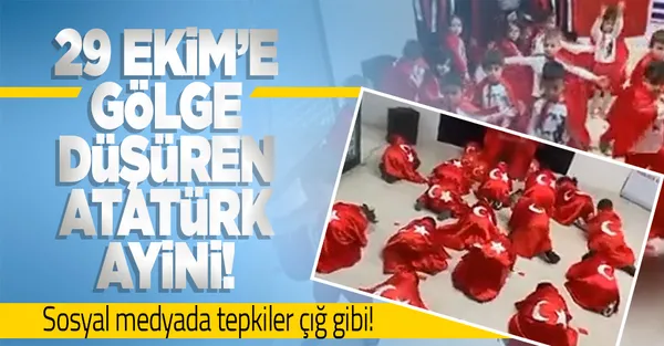 29 Ekim Cumhuriyet Bayramı tüm ülkede coşkuyla kutlanırken bir okulda ortaya çıkan bu görüntüler tartışmaya neden oldu. 29 Ekim kutlamaları kapsamında küçük çocukların Mustafa Kemal Atatürk'ün posteri önünde adeta 'secde' ettirilmesi, tepkileri beraberinde getirdi.