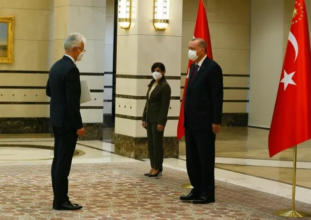 Cumhurbaşkanlığı Külliyesi'ndeki kabulde, Büyükelçi Degutis, Erdoğan'a güven mektubu sundu.