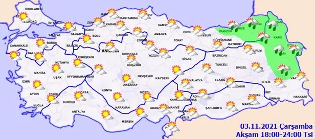 Meteoroloji Genel Müdürlüğünden son dakika yağış uyarıları gelmeye devam ediyor. Yapılan son değerlendirmelere göre, bugün Marmara'nın doğusu, Doğu Akdeniz'in doğusu, İç Anadolu, Karadeniz, Doğu Anadolu, Güneydoğu Anadolu'nun doğusu ile Kütahya ve Muğla çevrelerinde yağış bekleniyor. Peki, İstanbul, Ankara ve İzmir'de bugün hava nasıl olacak? İşte il il 3 Kasım hava durumu raporu.