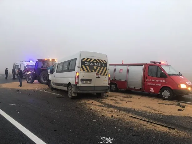 Tokat’ın Zile ilçesinde yoğun sis nedeni ile okul servisi ile 2 aracın karıştığı kazada 1 kişi öldü, 7’si öğrenci 8 kişi yaralandı. Öğrencilerin genel sağlık durumunun iyi olduğu öğrenildi.