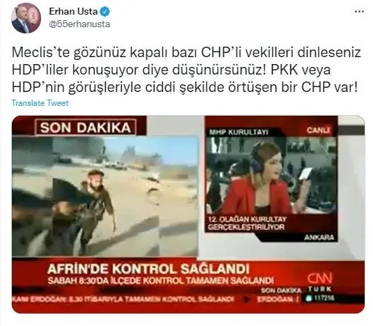 Usta'nın İYİ Parti'ye katılmadan önce CHP'ye yönelik sözleri de bir kez daha akıllara geldi. Erhan Usta, 2018'de katıldığı bir canlı yayında "CHP'nin milletvekilleri konuşurken gözünüzü kapasanız HDP'li milletvekilleri konuşuyor zannederseniz. CHP'li milletvekillerinin açıklamaları HDP ve PKK ile uyuşuyor" demişti.