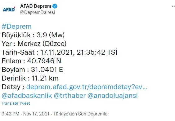 — AFAD Deprem (@DepremDairesi) November 17, 2021