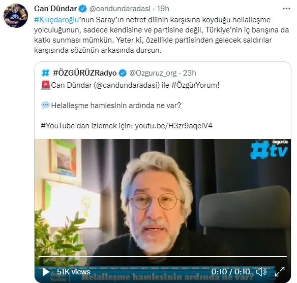 FİRARİ DÜNDAR'DAN KILIÇDAROĞLU'NA HELALLEŞME DESTEĞİ