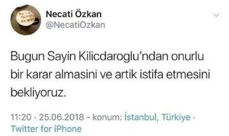 Özkan'ın "Dün dünde kaldı cancağzım. Artık mekanın yeni sahibi var" mesajına "Muharrem İnce Destek" adındaki Twitter hesabından belgeli bir yanıt gelmişti.