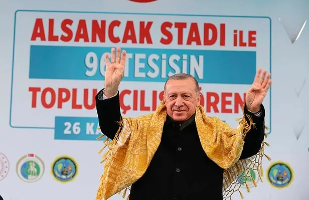 Son dakika haberi... Başkan Recep Tayyip Erdoğan, İzmir’de yapımı tamamlanan 96 tesisin toplu açılış töreninde önemli açıklamalarda bulundu. "Ülkemizdeki mandacı iktisatçılar ve mandacı siyasetçiler, Türkiye'nin en büyük ekonomik kurtuluş mücadelesini tam tersi göstermeye çalışıyorlar." diyen Erdoğan, "Ne yaparlarsa yapsınlar, bizi üretim, istihdam ve cari denge odaklı bu ekonomi programımızdan geri döndüremeyecekler." şeklinde konuştu. Faizlerin düşmeye devam edeceği sinyalini veren Başkan Erdoğan, "Biz, yüksek faize halkımızı da çiftçimizi de ezdirmeyeceğiz." ifadelerini kullandı.